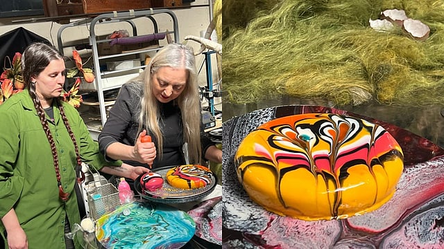 It was almost like a performance where she even showed how to glaze the desert so seamlessly. It was not just a gastronomical delight, but a magical experience starting from the handblown glass flowers, the Aladdin lamps for the tea, to the Nerikomi hand-made pottery, the performance-based photographs, steel sculptures made to look like pigs, the exquisite food, the lighting design, and the magnificent Fountain of Life.