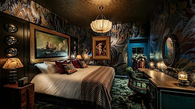 That starts right with the boutique hotel’s 12 guest rooms and suites, each with their own story that shows off the history of Islay and Ardbeg. The interiors are rather unique, setting the scene for a maximalist stay that’s a far cry from a contemporary-styled retreat. One accommodation, the Rebel Suite, takes its design cues from the sea rebellions of Islay, full of nautical references, striking patterns, and bold green and blue hues. Another, the Monster Room, is awash with red and brown, offering up a chandelier that sprouts from the ceiling, seemingly alive, and a massive bed wrapped in vines as the room’s statement pieces, Afar reported. The wallpaper in this space also has a special meaning: It was a custom project meant to evoke crocodile skin, paying homage to the legend of Islaygator. (The brand even created a whisky in honor of the creature.) And, if you’re looking for an extra surprise, you may find a bottle or two of whisky hidden throughout the rooms.