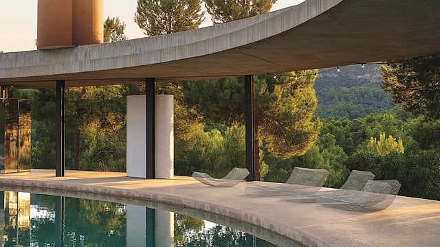 In 2010, they purchased 200 hectares (about 494 acres), with sweeping views of the Ports de Tortosa-Beseit mountain range and deep valleys blanketed with pine, olive, and almond trees. They approached celebrated Belgian landscape architect Bas Smets—whose portfolio notably includes the botanicals around the newly reborn Notre-Dame cathedral in Paris—to design “climate-smart” outdoor areas that link the residences and enhance ecological resilience using native species. They also enlisted the Swiss art curator and critic Hans Ulrich Obrist, artistic director at London’s Serpentine Galleries, as a long-term collaborator and cultural adviser.