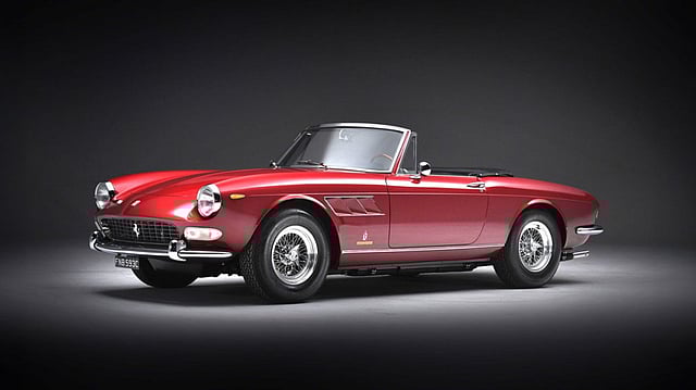 The 275 model was the successor to Maranello’s 250 lineup, and both new-at the-time hardtop and droptop variants introduced noteworthy elements from the motorsport-focused machines campaigned by Scuderia Ferrari during the period. These, according to Ferrari’s own online description, included “a combined gearbox and differential in a transaxle assembly, and the provision of independent rear suspension.” This was next-gen performance born from racing and applied to touring, and it was all driven by a 260 hp, 3.3-liter Colombo V-12—with 275 cc of displacement per cylinder, hence the moniker—mated to the aforementioned five-speed manual transaxle. The result was a convertible that crests 150 mph.