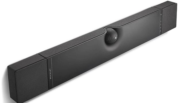 Trust the French to be the odd ones out. The Devialet Dione is slim, sculptural, and hides 17 drivers inside a chassis that looks more like a piece of modern art than a soundbar. But the shape is more about function than just form. Technically, it’s a 5.1.2 system, but Devialet’s signal processing does some serious heavy lifting, and thanks to the rotating ORB centre channel, dialogue stays anchored whether the bar is wall-mounted or placed flat. Devialet’s SPACE algorithm is the highlight, upmixing stereo signals into a believable surround sound sphere and making it an effective music machine.