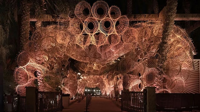 Enter Layali Diriyah 2025. For the third year running, Dubai and Riyadh-based architectural studio Designlab Experience (DLE) has created an immersive and experiential event in the Saudi Arabian desert that celebrates heritage, innovation, and art. For the uninitiated, the setting of a retail village in a palm tree farm is a stone’s throw from the UNESCO World Heritage site At-Turaif, which was Saudi’s first capital and the original home of its royal family. The Diriyah Gate Development Authority spearheaded the project.