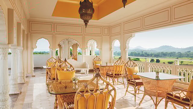 If udaipur’s your top pick for a Bollywood-style destination wedding, then this hotel’s made for a magnum opus. The 18-acre, 327-key hotel is purpose-built for it with over 1,40,000 square feet of opulent banquet spaces and thoughtful details such as golf carts to ferry the elderly and the disabled. The rooms and suites—a few include pools, terraces, and forest views—are well thought out, with amenities including steamers that can de-wrinkle sherwanis in a jiffy. Zaika, the all-day diner, is another bright spot for its mix of cuisines. While the hotel’s principal bar Dahaad that translates to ‘roar’ may appear misnamed for its mascot: the leopard (which saws), it does get its drinks spot-on, including inventive mixes that smoke, foam, and crystallise their way to your table. The curious visitor might want to pick from their roster of experiences; I, for instance, enjoyed a guided horse safari through the woods nearby.