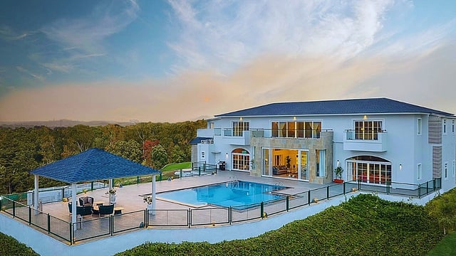 Sleep comes easily. Mornings unspool slowly here: a dip in the pool, a walk across the lawns, and a breakfast of poha, idli, dosa with chutneys, eggs made to order, fresh fruit, and coffee. Later, Jadhav walks me through the estate’s grounds—tomatoes sprouting in one patch, wild pink hibiscus in another. The vines are still young, but promising. Sweeping lawns stretch into the hills, with plans for private cottages and an alfresco kitchen on the horizon.