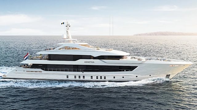 Want some readily available water transport for the summer? If so, Heesen’s new 180-foot Project Agnetha, with a gorgeous interior by Italian designer Luca Dini, should float your boat. The Dutch yard just launched its latest 55-meter steel series vessel, noting it’s ready to be delivered in the next few months. That’s a much shorter wait than the typical two to three years for most semi-custom superyachts.